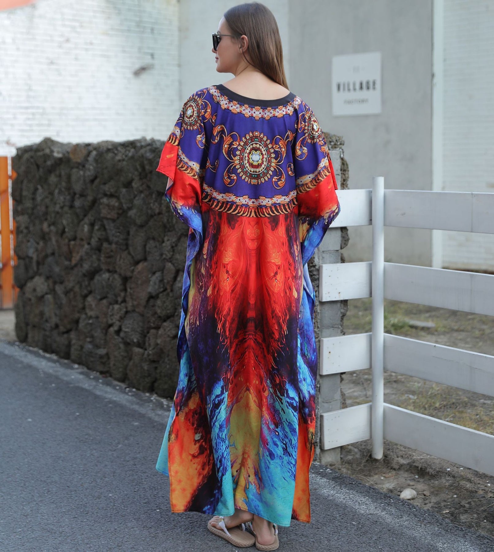 The RILVA design focuses on versatility, allowing this kaftan to function both as a chic beach cover-up and a stylish maxi dress suitable for casual summer events. Whether layered over swimwear or worn on its own, the garment provides exceptional coverage without compromising on elegance. The relaxed fit and breezy cut help keep you cool even in high temperatures, while the vibrant patterns and color options add a touch of effortless sophistication.