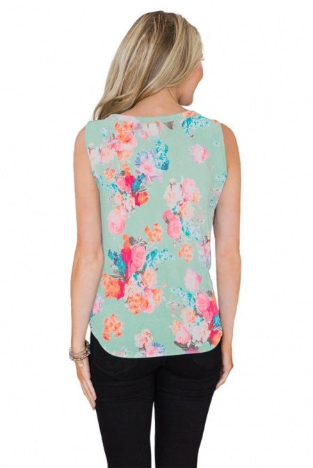 RILVA sleeveless button embellished print top featuring a stylish and breathable design ideal for casual and summer wear. This alt tag describes a women’s fashion top with a sleeveless silhouette, decorative front buttons, and a unique printed pattern that adds character to any outfit. The RILVA sleeveless button embellished print top is crafted for comfort and versatility, offering a lightweight feel perfect for warm climates, vacations, weekend outings, and everyday activities. The print design enhances visual appeal, while the button embellishments create a subtle yet fashionable focal point. The top pairs effortlessly with jeans, skirts, shorts, and trousers, making it a flexible wardrobe essential. The fabric drapes comfortably on the body, providing ease of movement and all-day wearability. Whether worn alone or layered under jackets or cardigans, the RILVA sleeveless button embellished print top suits a variety of personal styles, from minimalist chic to vibrant casual looks. Suitable for women seeking both comfort and fashionable detail, this top offers a modern take on classic sleeveless apparel. Ideal for spring and summer seasons, gatherings, vacations, or relaxed outings, the RILVA sleeveless button embellished print top remains a go-to choice for effortless style. Perfect for fashion photography, product listings, and e-commerce platforms.